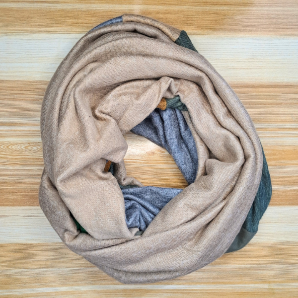 Podés usarlo como cuello doble ( 2 vueltas) o cuello simple y capucha.