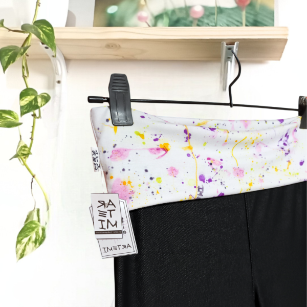 Tiro alto con costura de refuerzo. La cintura es doble y ancha, para doblar y regular la altura del tiro a gusto (no lleva elástico).