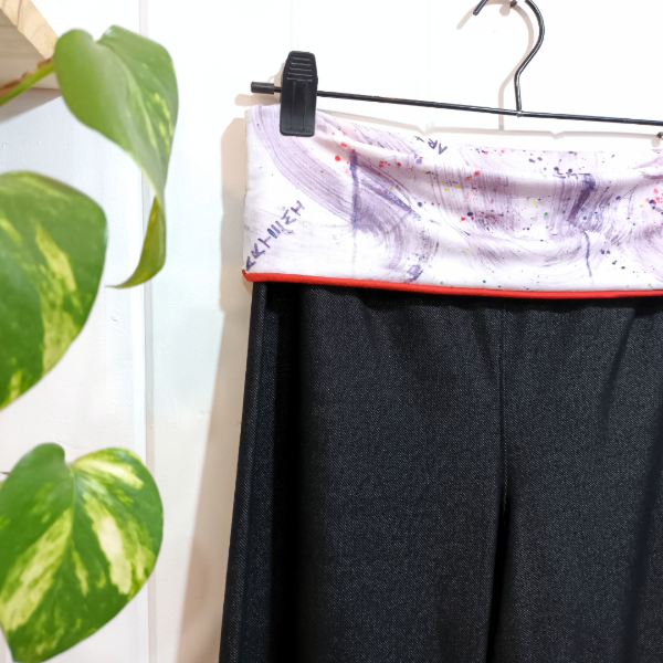 La cintura es doble y ancha, para doblar y regular la altura del tiro a gusto (no lleva elástico).