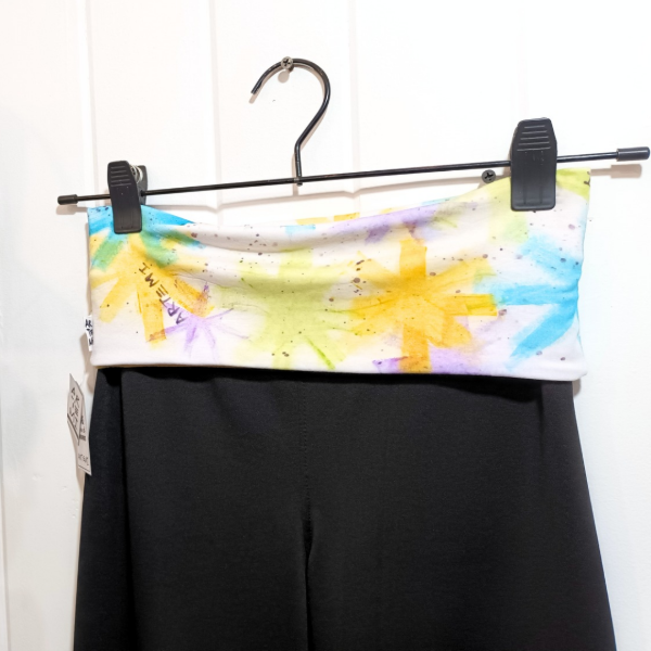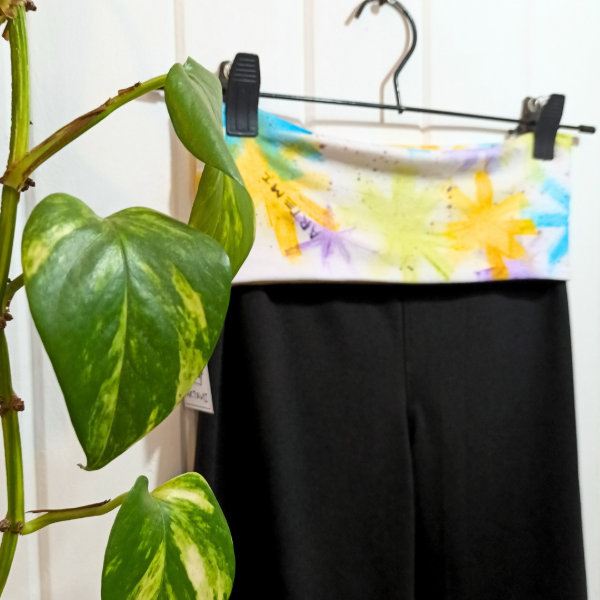 Los detalles estampados de la cintura son pintados a mano y luego transferidos a la tela.