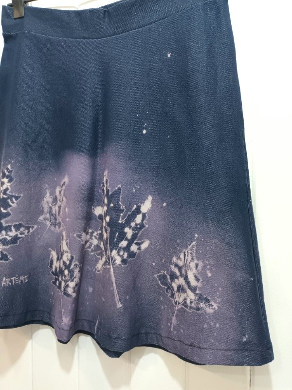Pollera confeccionada en lyra de algodón símil jean color azul.